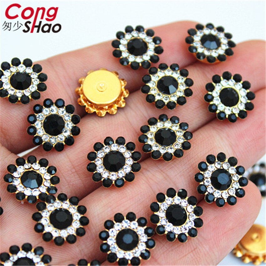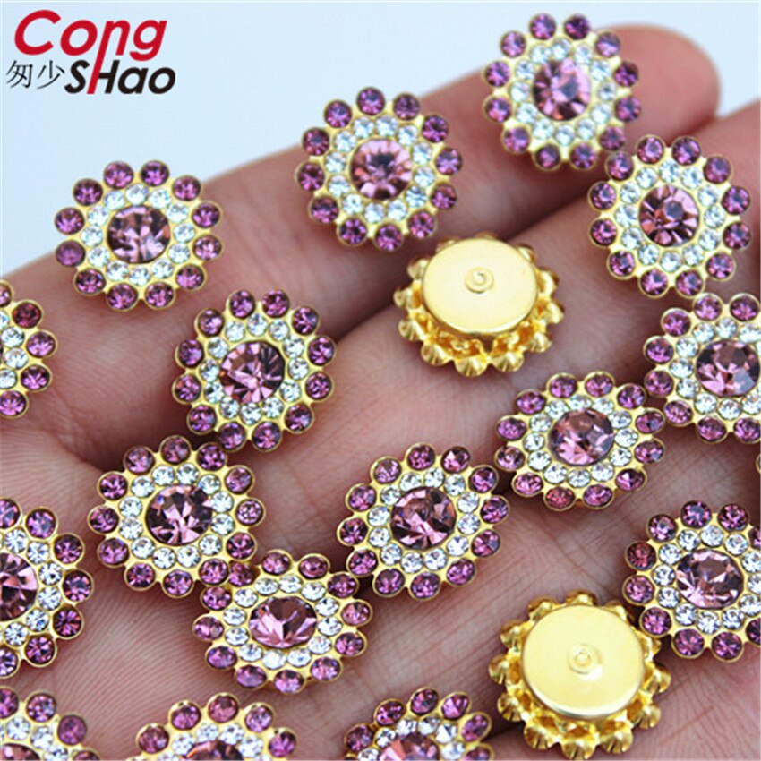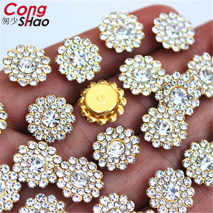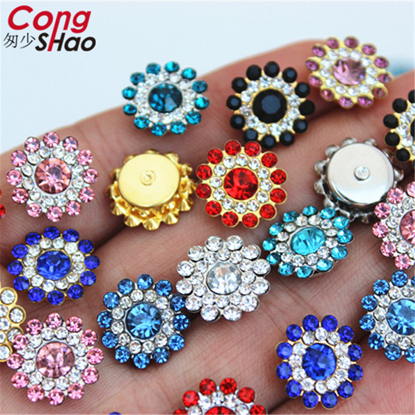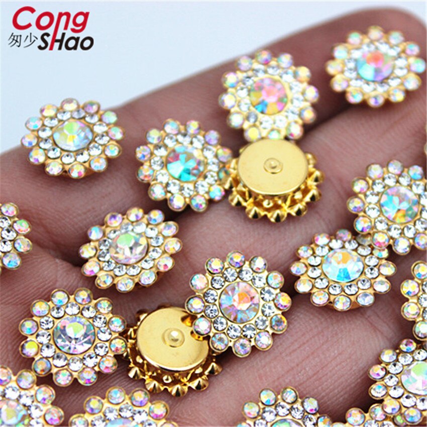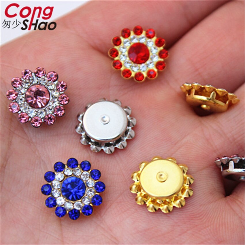 13.5mm Roestvrij staal ondersteuning Mix kleur Zon bloem Strass Kristallen DIY naaien trouwjurk Knop Decoraties