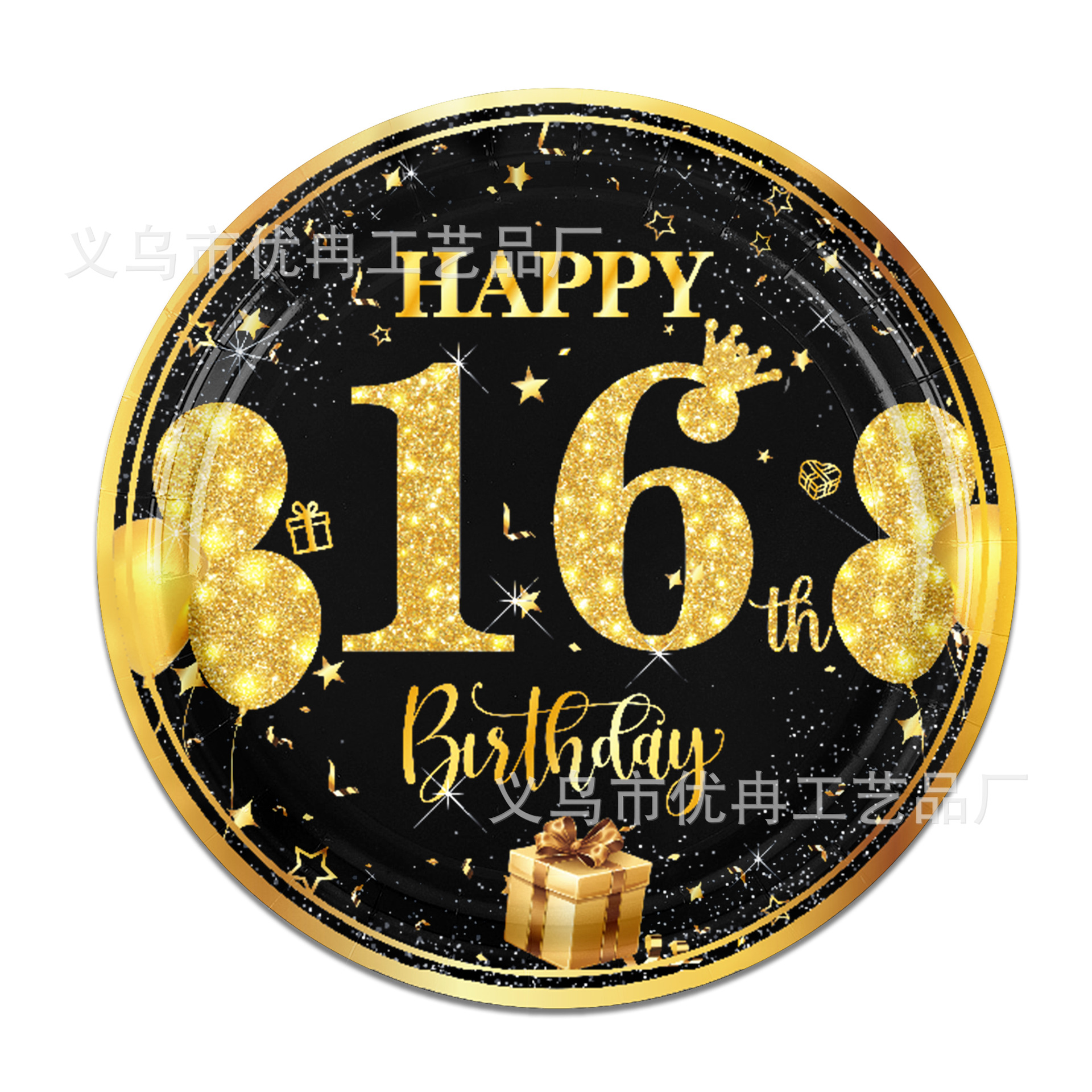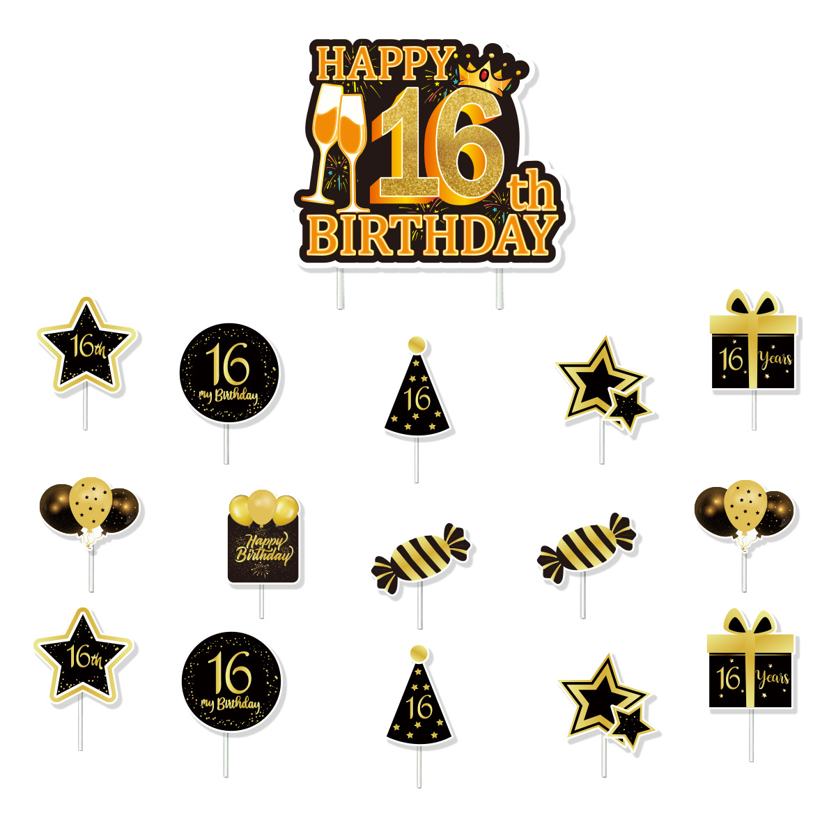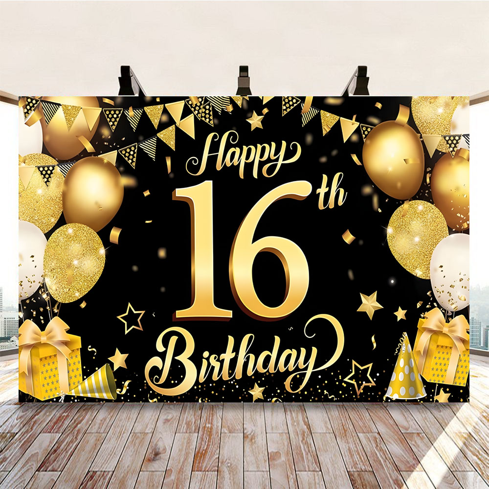 16e verjaardag voor jongens meisjes Gelukkige 16e verjaardag benodigdheden 16 feestdecoraties Zwart goud 16e verjaardag Borden Servetten Tafelkleden