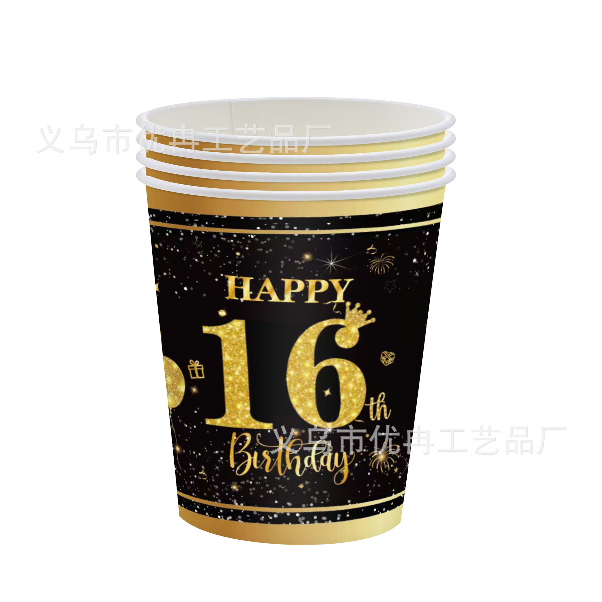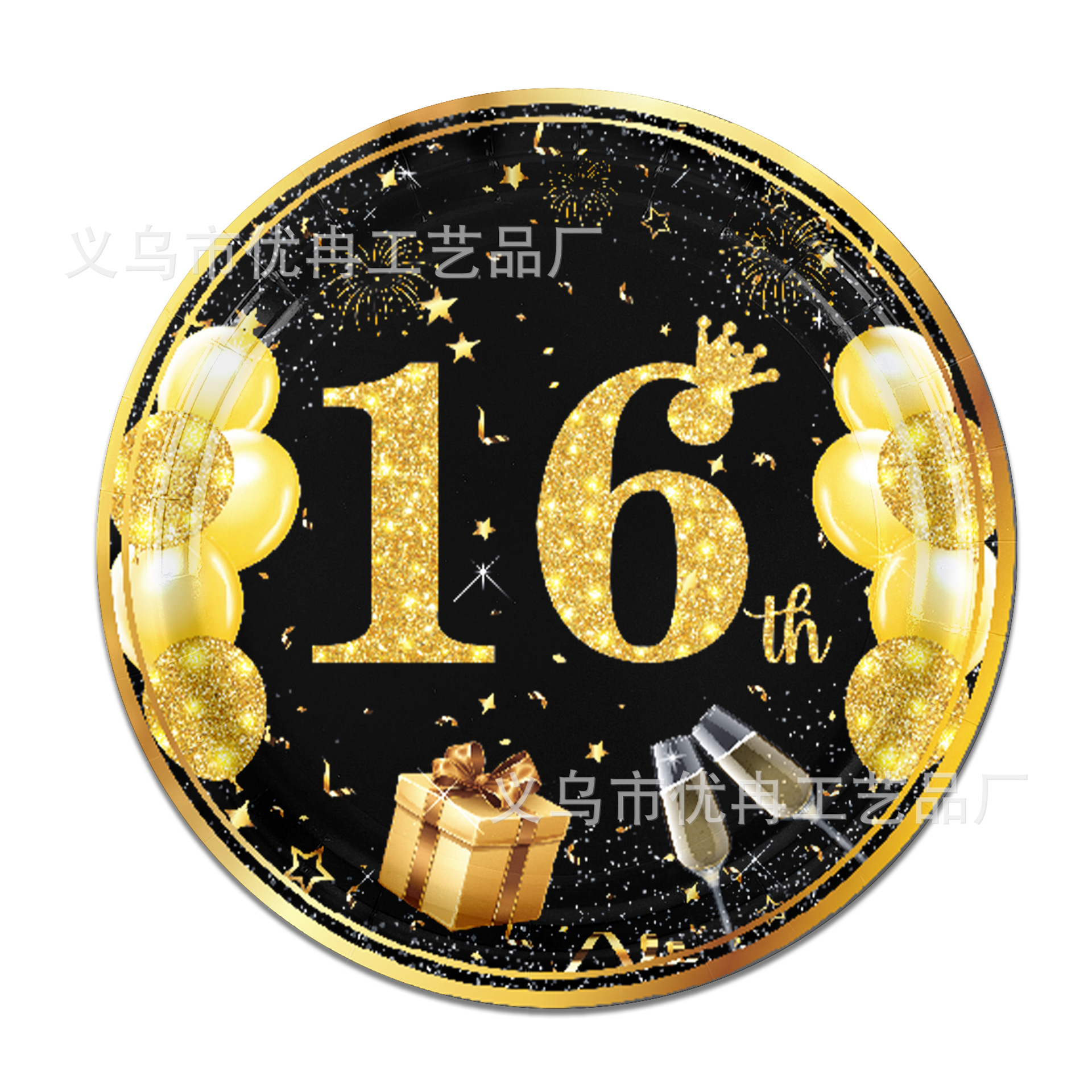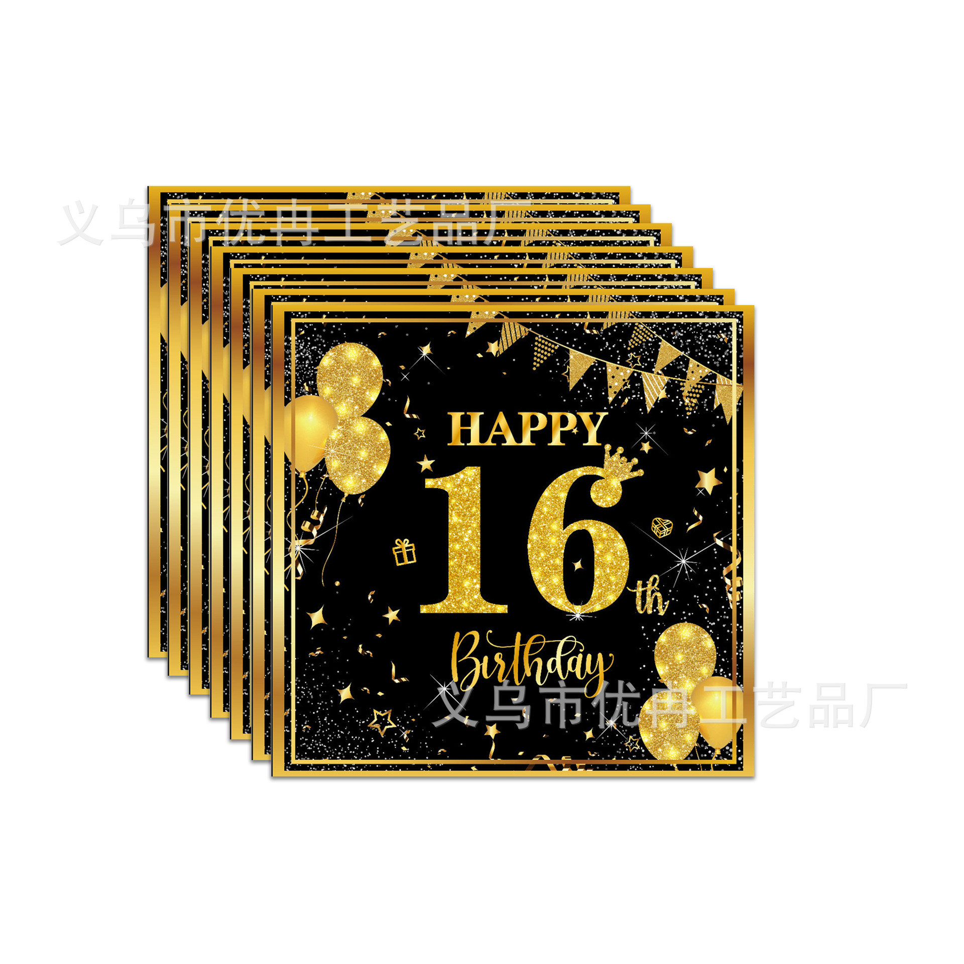 16e verjaardag voor jongens meisjes Gelukkige 16e verjaardag benodigdheden 16 feestdecoraties Zwart goud 16e verjaardag Borden Servetten Tafelkleden