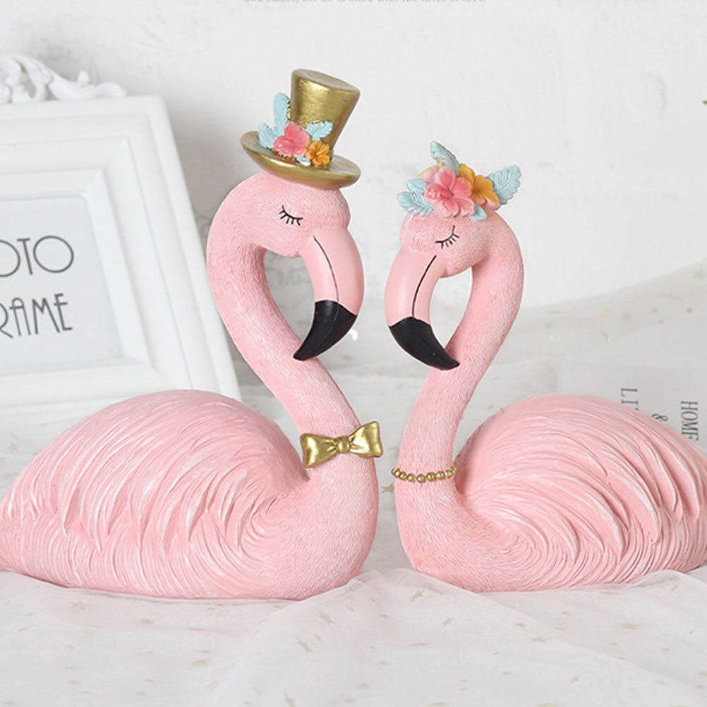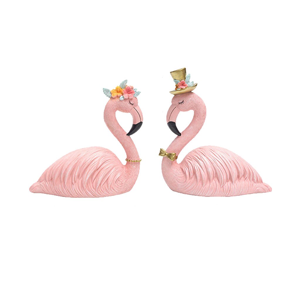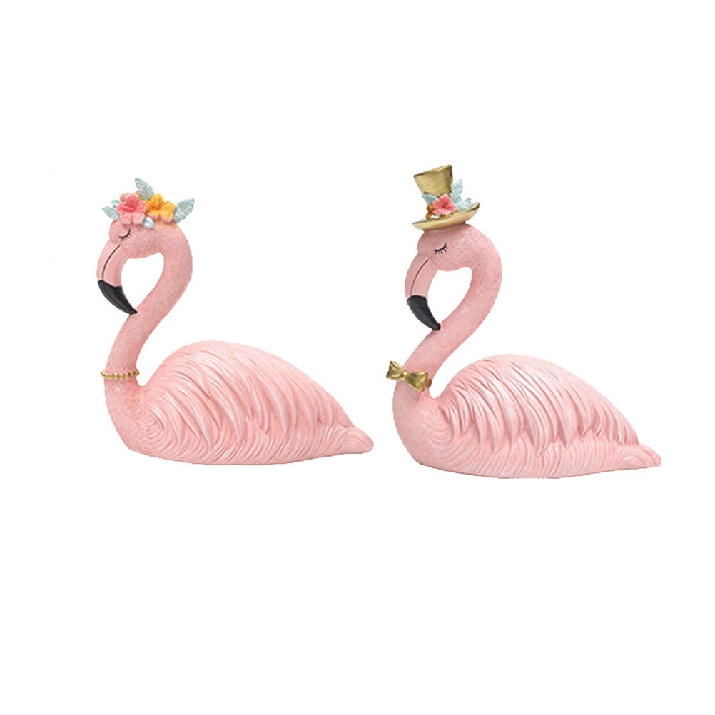 2 Stuks Home Decor Resin Craft Flamingo Auto Ornament Flamingo Cake Ornament Decoratieve Flamingo (1 Stuks Prins, 1Pcs Prinses)