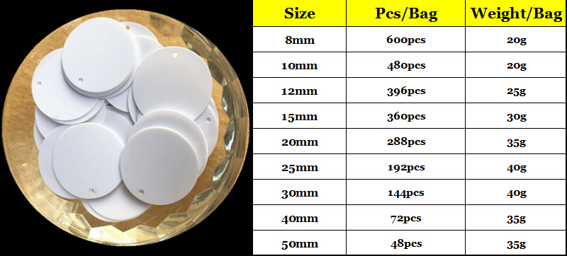 8mm/10/12/15/20mm/25/30/40/50mm wit Serie Kleur Grote Pailletten Platte Ronde Pvc Sequin Pailetten sew Wedding Craft met 1 gat