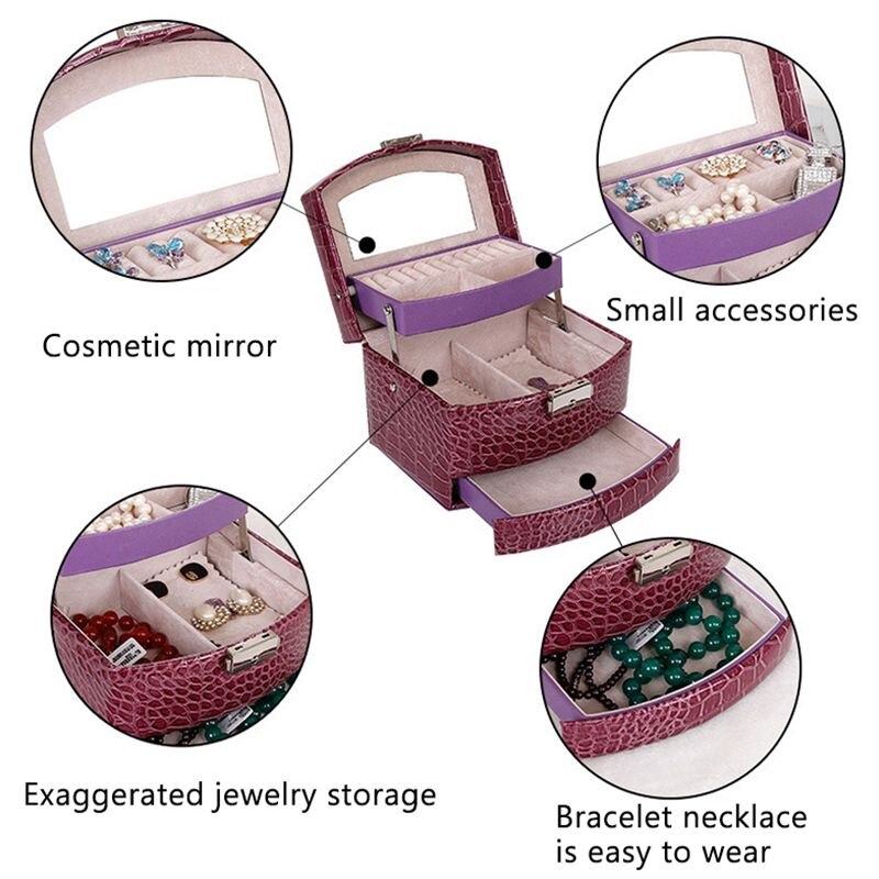 Automatische Lederen Sieraden Doos Drie-Layer Opbergdoos Voor Vrouwen Oorbel Ring Cosmetische Organisator Kist Voor Decoraties