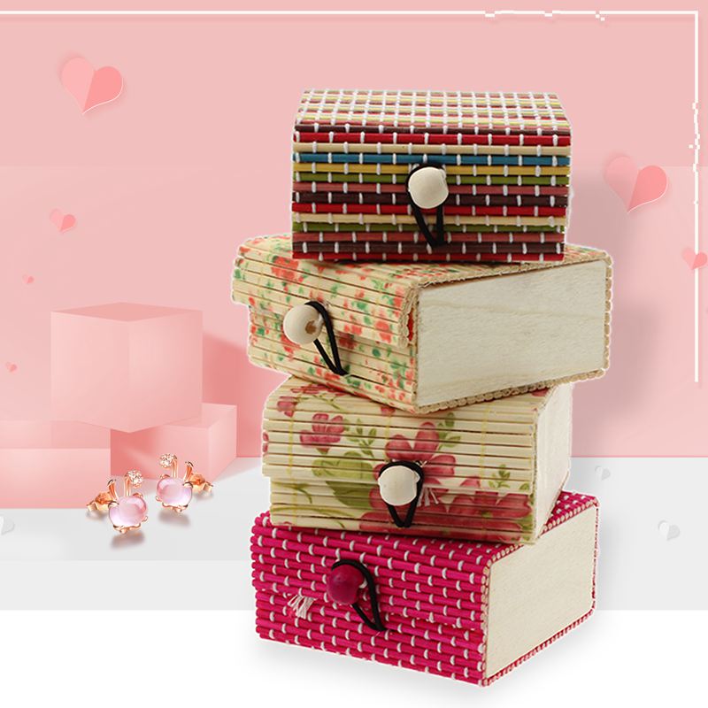 BEST1Pc Delicate Ring Ketting Oorbellen Bamboe Houten Case Sieraden Opbergdozen Kleurrijke