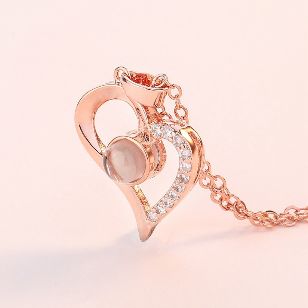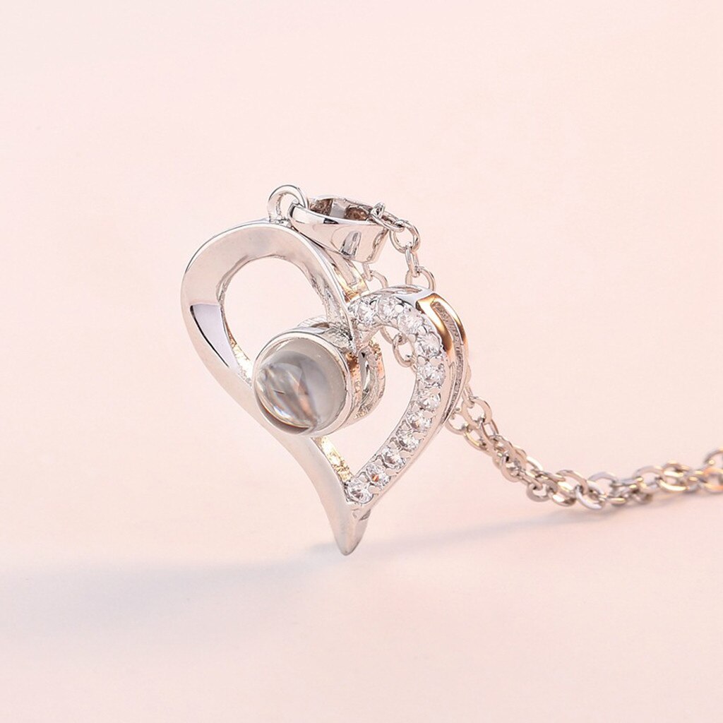 Dames Romantische Ketting 100 Talen I Love U Taal Valentine Projectie I Love U Ketting бижутерия #40
