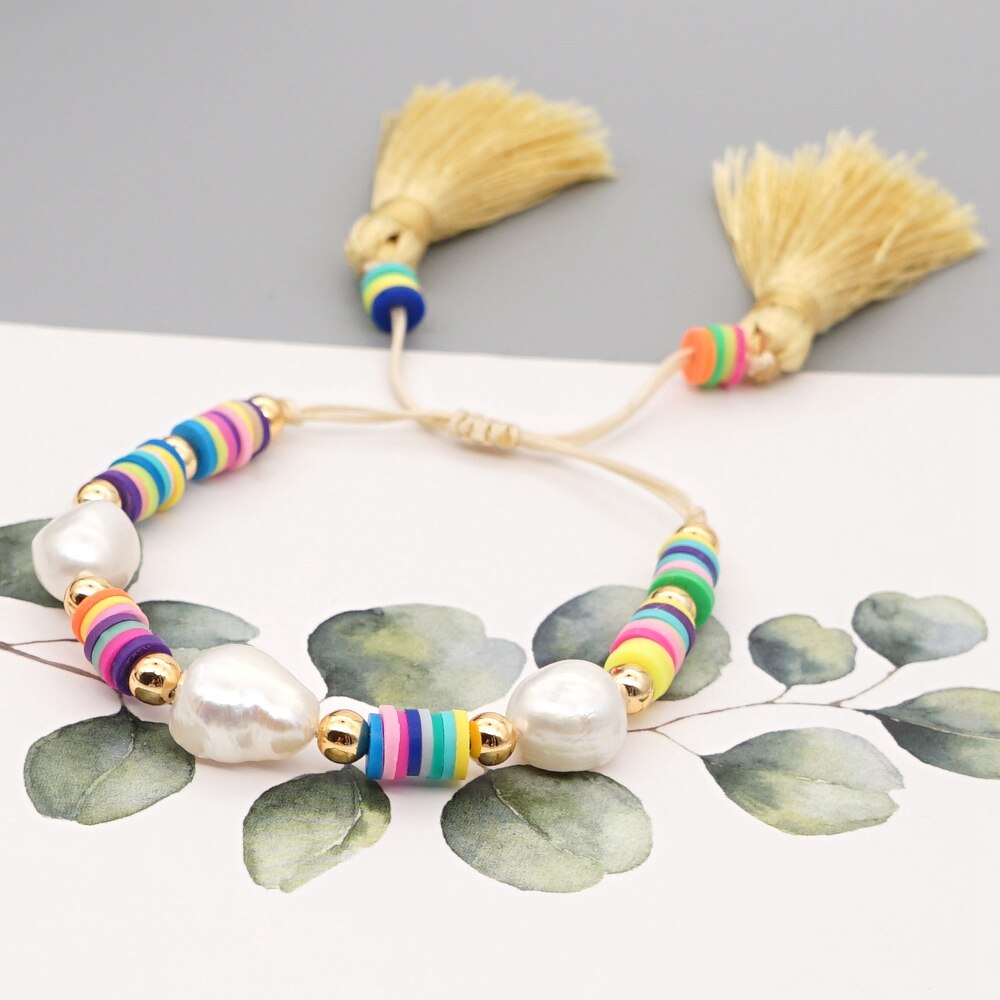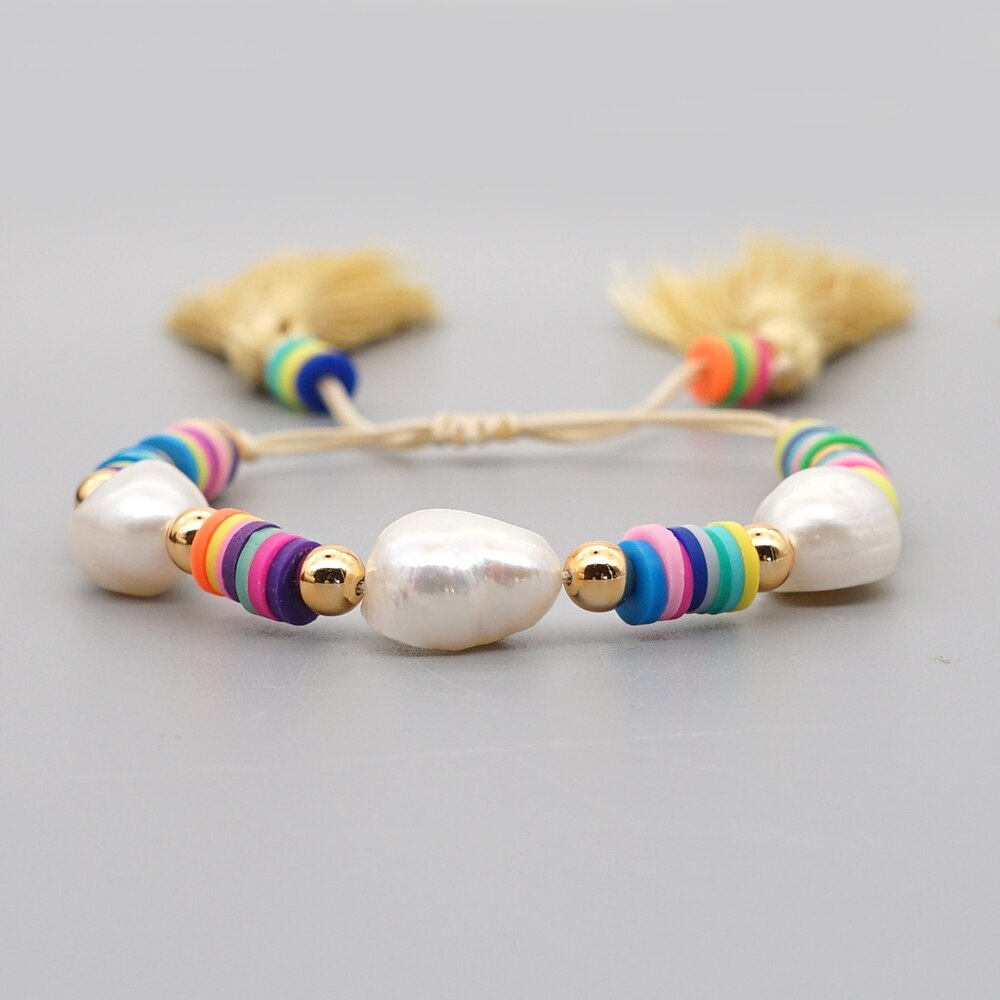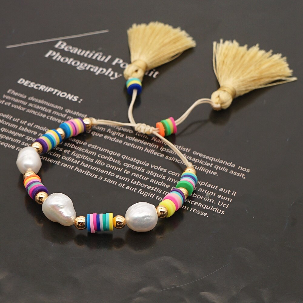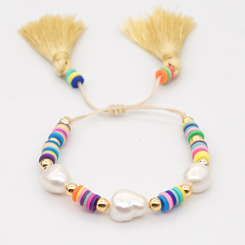 Go2Boho Perles Heishi Armband Voor Vrouwen Polymeer Klei Kralen Kwastje Armbanden Zomer Strand Zoetwater Barok Parel Sieraden