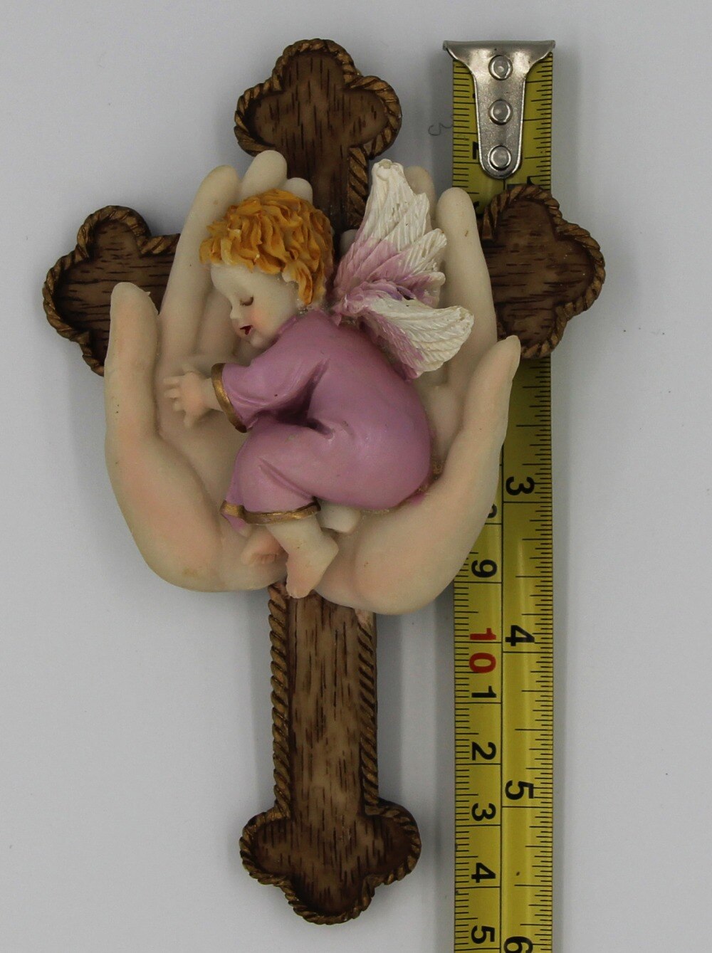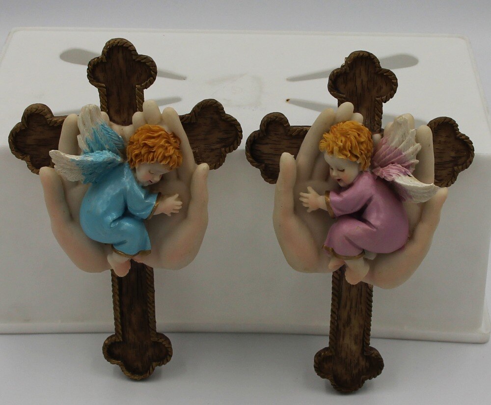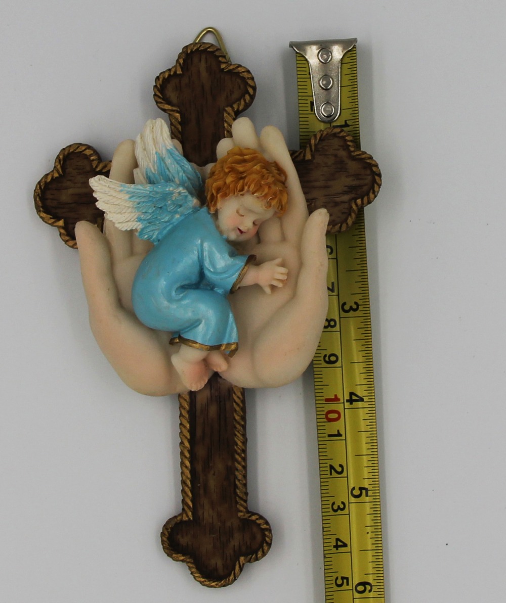Hoek in Hand met Cross 6 inches Hars Standbeeld Home Decor Muur opknoping Decor Kruisbeeld met hoek