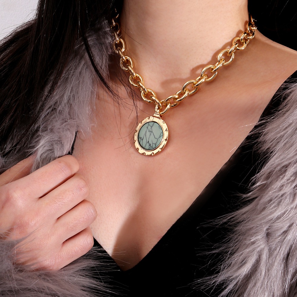 Ingesight. Z Vintage Groene Steen Hanger Ketting Verklaring Goud Kleur Heavy Metal Lange Ketting Ketting Voor Vrouwen Sieraden