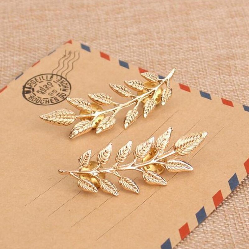 Mannen Pak Gouden Bladeren Rose Broche Mannen En Vrouwen Eenvoudige Broche Insert Woord Lange Naald Goud