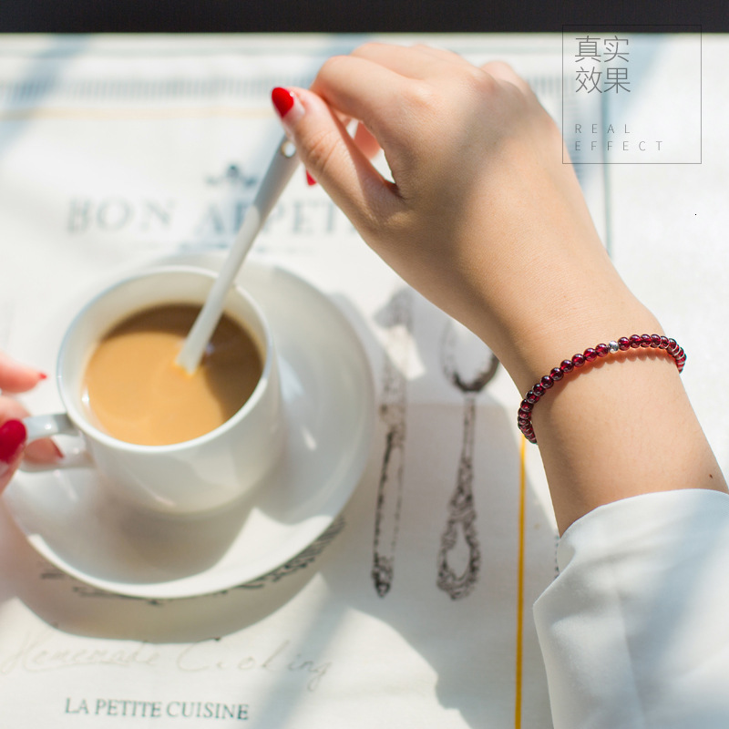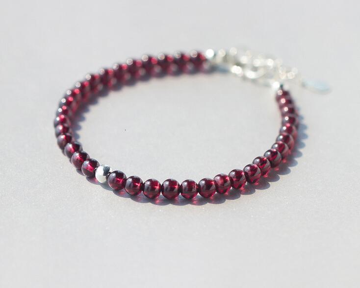 Real. 100% 925 Sterling Zilveren Sieraden Ronde 5MM Natuurlijke Rode Granaat Steen & Lucky Ball bead charms Armband GTLS399