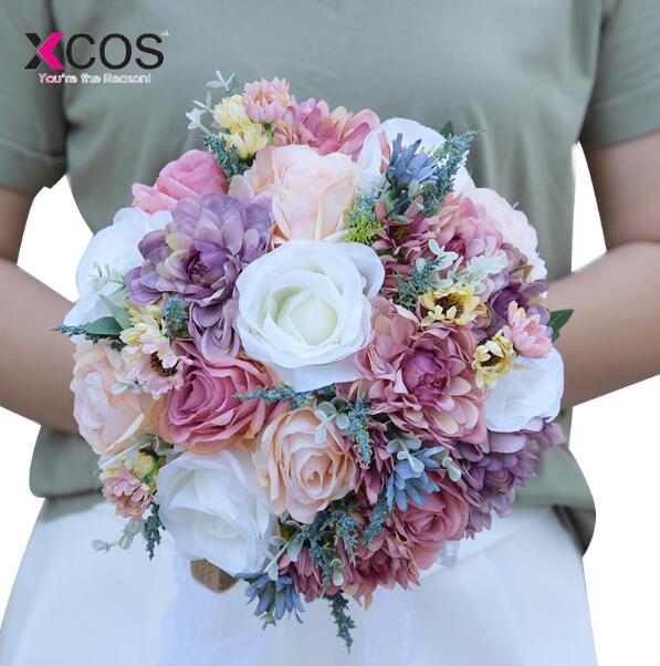 Roamtic Bruiloft Bloemen Bruidsboeketten Wit Roze Paars Blauw Land Tuin Bohemien Bruid Boeket de mariage