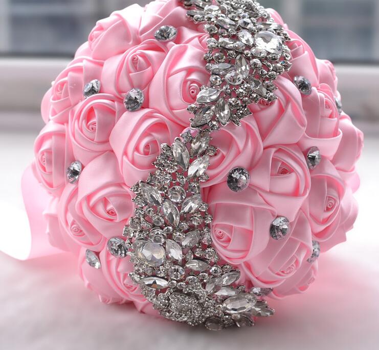 Rose Goud Rose Bruiloft Bloemen Bruidsboeketten Sparkly Luxe Diamond Crystal Voor Bruid Ramos De Novia