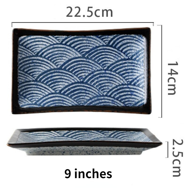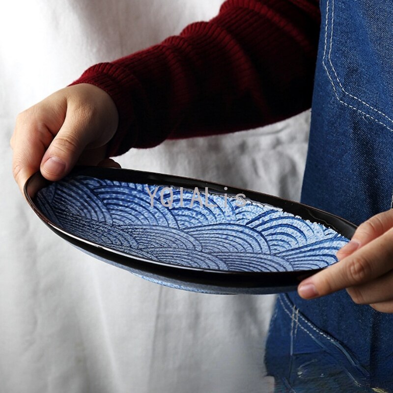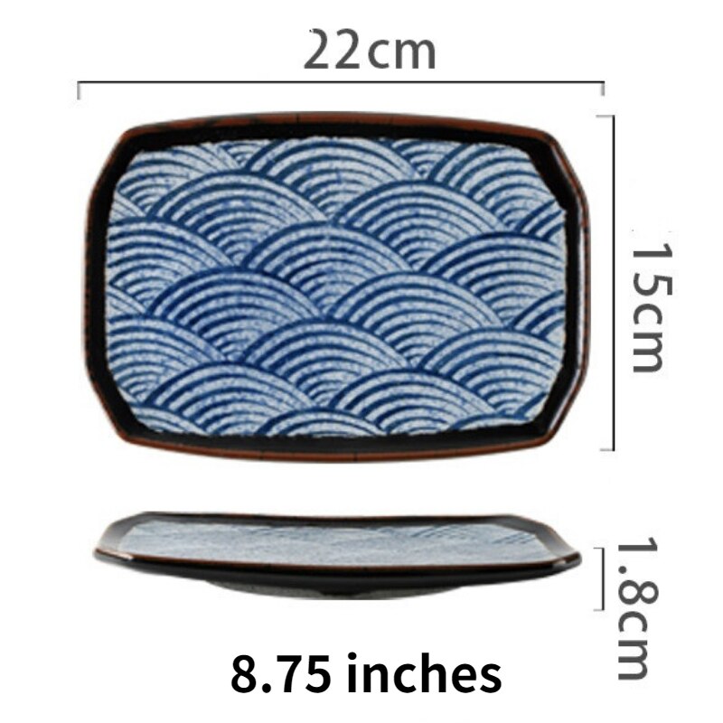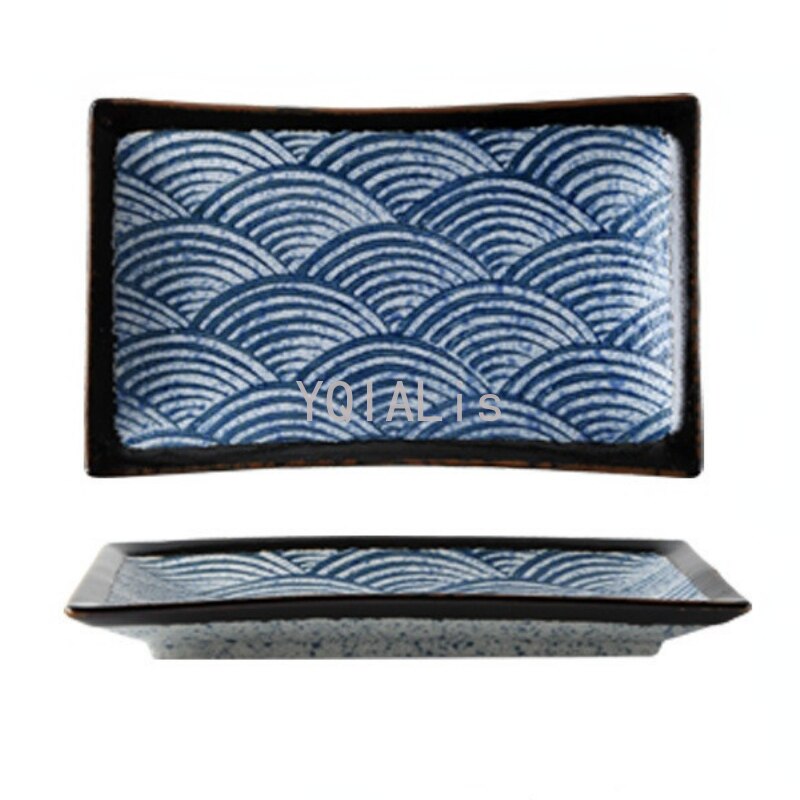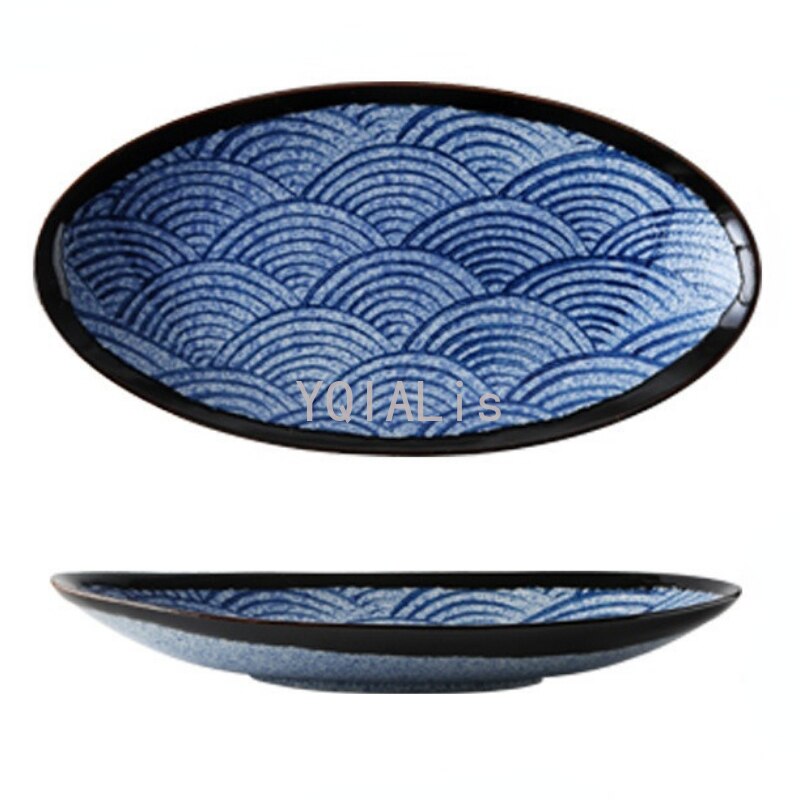 Sea Blue Wave Plates Retro Ceramic Tableware Sushi Dish Sea Cuisine Steak Barbecue Platter Fish-shaped Star Anise