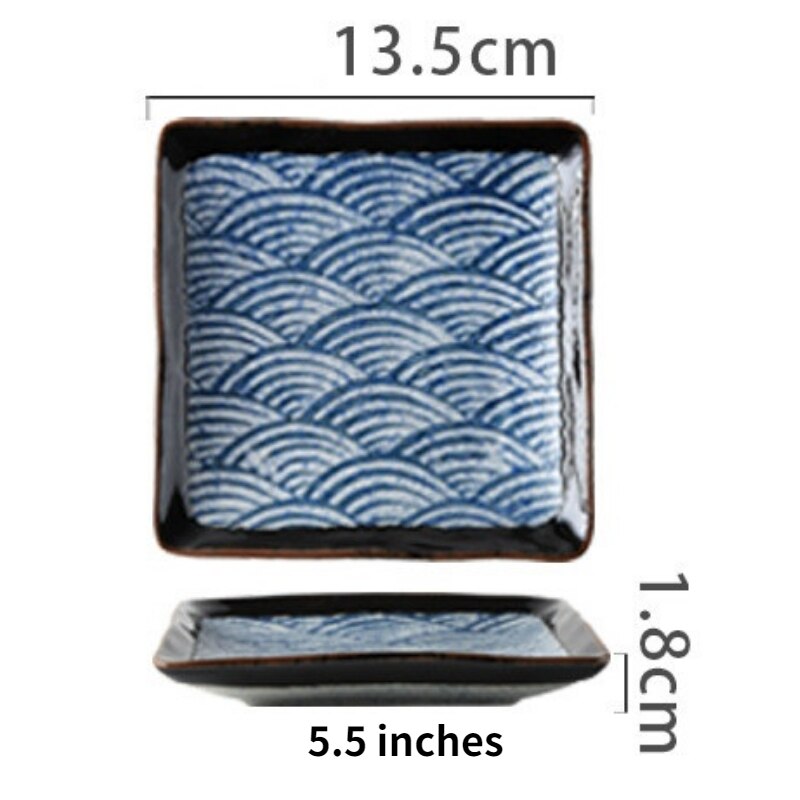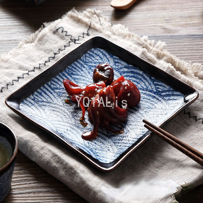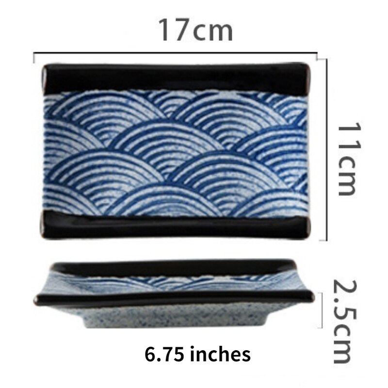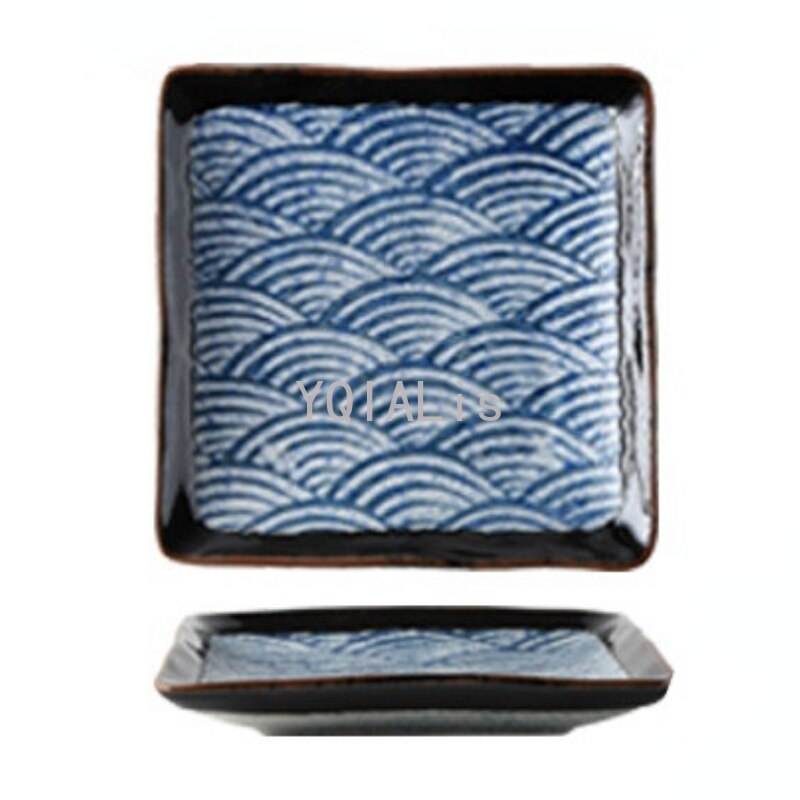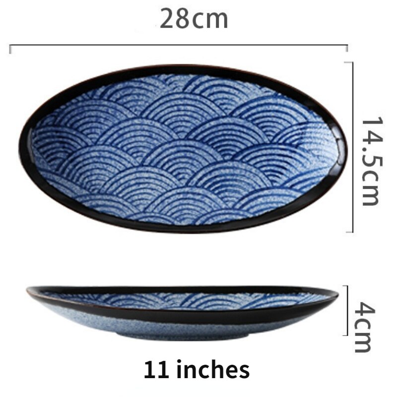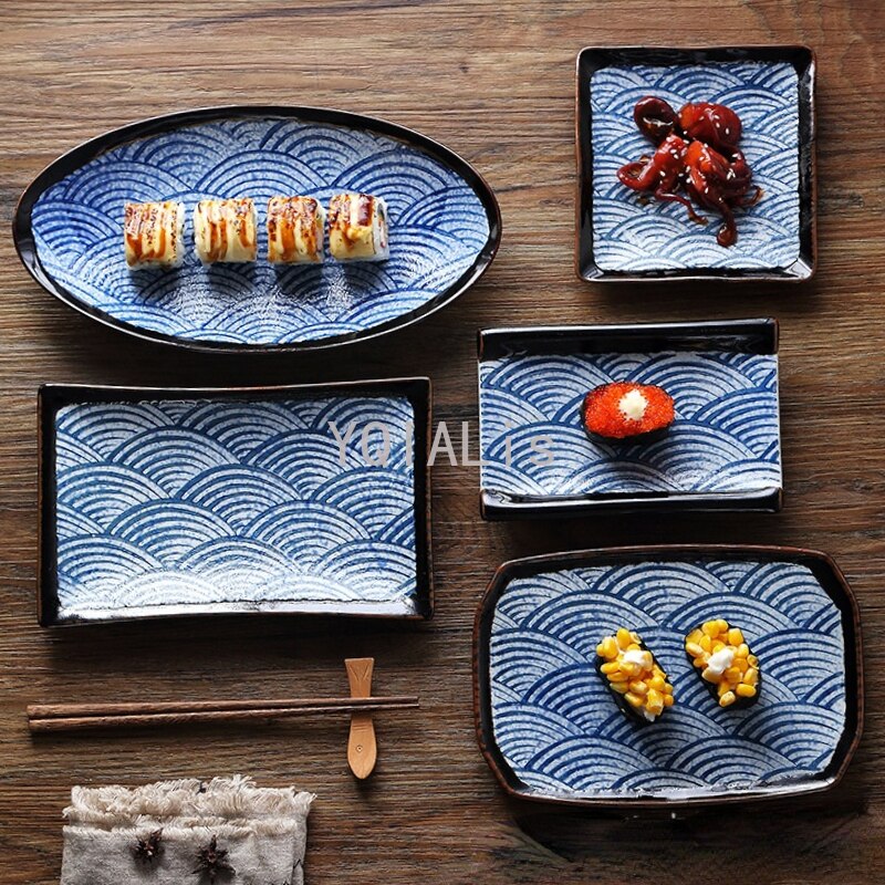 Sea Blue Wave Plates Retro Ceramic Tableware Sushi Dish Sea Cuisine Steak Barbecue Platter Fish-shaped Star Anise