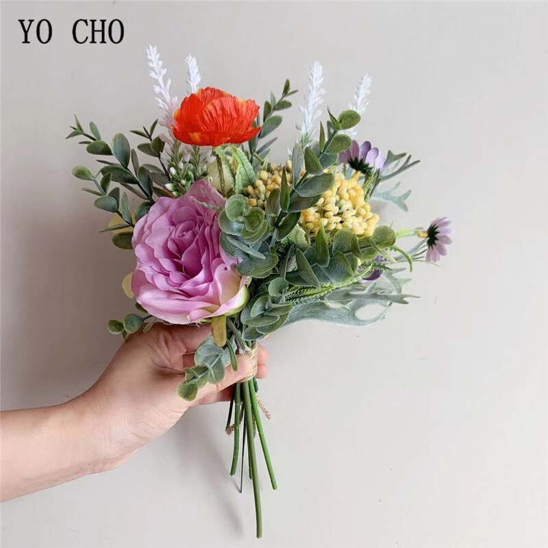 YO CHO Rose Boeket Bruid Bruiloft Bloem Boeket Kunstbloem Zijde Hydrangea Lavendel Orchidee Daisy Fruit Wedding Supply